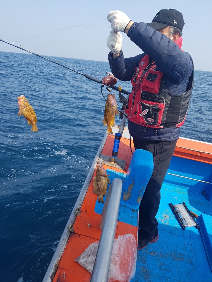 가거초 우럭 대롱대롱 달려요